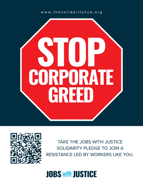 Stop Corporate Greed and let others know how they can do the same by encouraging their pledge with these 4.25 x 5.5 White Gloss 19x13 100lb full color printed post cards. Sold in packs of 100 for $30.
